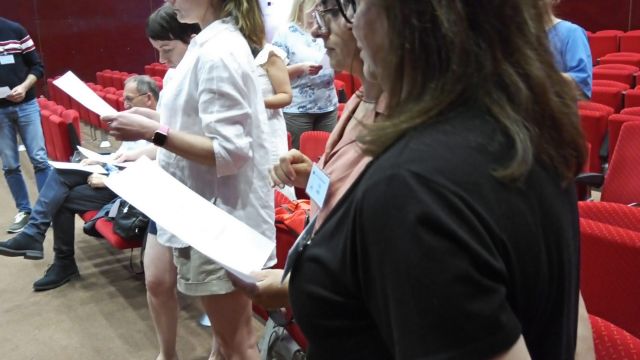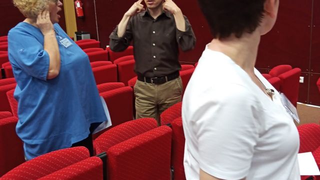 w Portugalii była kwestia opanowania przez nauczycieli techniki mówienia. Emisja głosu jest ważna i w pracy aktora teatralnego, i nauczyciela. Szczegółowo analizowano go podczas wykładu, a następnie praktycznego warsztatu praktycznego warsztatu „The Voice, a teacher’s best tool”. Pod kierunkiem instruktora i wykładowcy w szkole teatralnej nauczyciele poznali szereg użytecznych technik oraz ćwiczeń, które mogą wspomagać ich w codziennym wysiłku szkolnym.