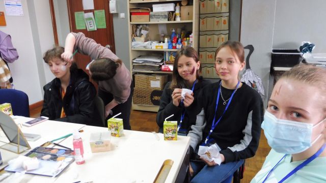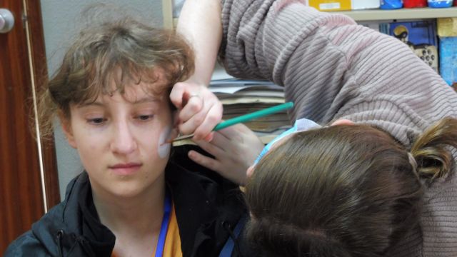 Do szkoły przyjechały studentki ze studium stylistyki teatralnej, aby pokazać nam, na czym polega praca wizażysty teatralnego i filmowego. Jak wiadomo, makijaż odgrywa ważną rolę na scenie czy planie filmowym, musi być przemyślany