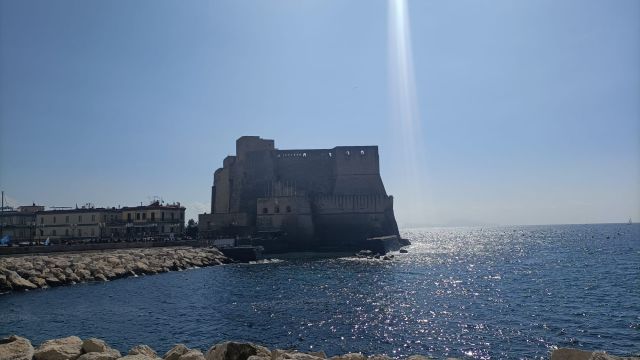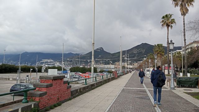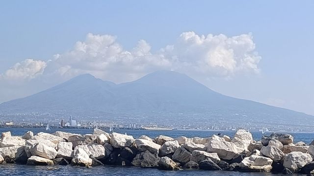 Zanim późnym popołudniem spotkaliśmy się na neapolitańskim dworcu kolejowym z grupą z Portugalii, odbyliśmy krótki spacer po gwarnej nadmorskiej promenadzie ciągnącej się wzdłuż Zatoki Neapolitańskiej. Z daleka oglądaliśmy Wezuwiusz, najsłynniejszy chyba wulkan w Europie. Będąc w Neapolu,