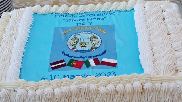 Po zakończeniu spektaklu odbyła się uroczystość wręczenia certyfikatów uczestnictwa w spotkaniu w Battipaglii i pożegnalny obiad. Miłym dodatkiem był pyszny tort pięknie udekorowany logiem naszego projektu.