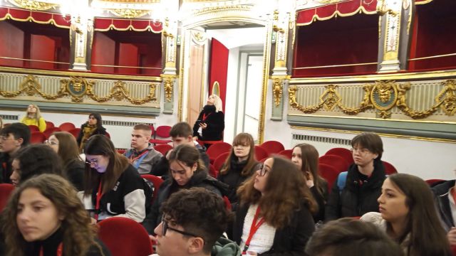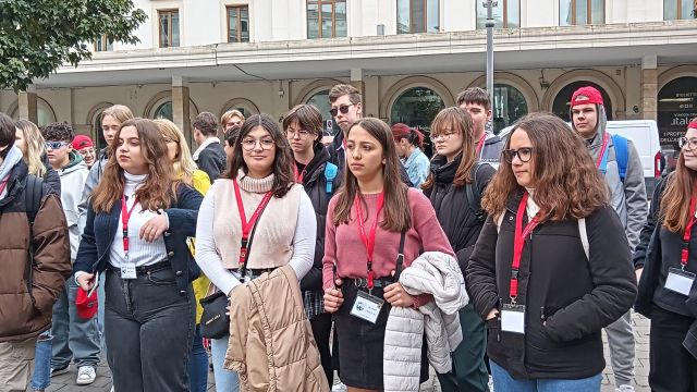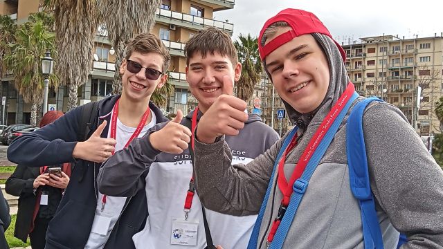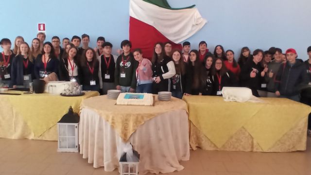 Grupę uczniów z Portugalii poznaliśmy jeszcze poprzedniego dnia, podczas śniadania w hotelowej restauracji spotkaliśmy się z ekipą rówieśników z Łotwy. Wszyscy razem wyruszyliśmy do Istituto di Istruzione Superiore „Enzo Ferrari”, gdzie w wielkiej szkolnej auli czekali na nas przedstawiciele społeczności Instytuto Comprensivo „Sandro Penna”, czyli nasi gospodarze. Po oficjalnym powitaniu