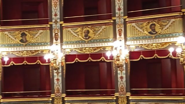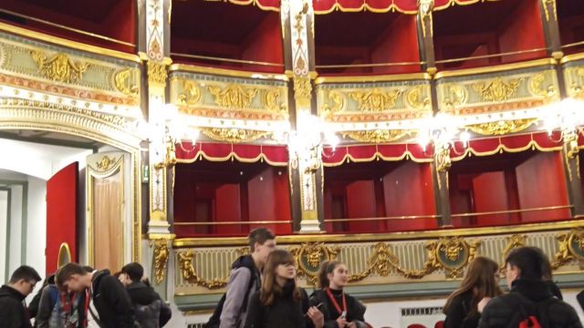 skąd po półgodzinnej jeździe pociągiem trafiliśmy do Salerno, dużego miasta położonego nad Morzem Tyrreńskim. Długa morska promenada wysadzana palmami zaprowadziła nas do zbudowanego w II poł. XIX w. Teatru im. Giuseppe Verdiego. Zanim weszliśmy do głównej sali widowiskowej, przewodnik zwrócił naszą uwagę na rzeźbę przedstawiającą włoskiego kompozytora Giovanniego Pergolesiego. Jak wyjaśnił, ma ona wprowadzić każdego widza i słuchacza